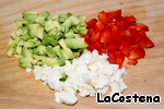 Для начинки порежем авокадо, сладкий перец и моцареллу.