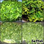 Шпинат моем, режем, замачиваем на полчаса, отжимаем и тушим с луком, чесноком и со специями до тех пор, пока вода не испарится.