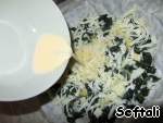 Кладем начинку, посыпаем сыром и заливаем взбитым яйцом с молоком и маслом.