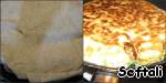 Кладем на сковородку лист теста, на него кладем порванный второй лист теста. -