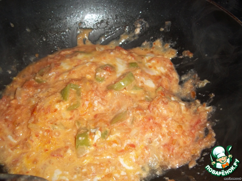Турецкие семьи очень большие - 4-6 детей (в среднем), следовательно, для завтрака у них используют килограмм крупных помидоров, десяток яиц, 5-6 перцев и много лука (по вкусу). У свекрови 4 детей, постоянно в гости приезжает внучка, а тут еще и невестка (это я), представьте, какой завтрак нужно приготовить!