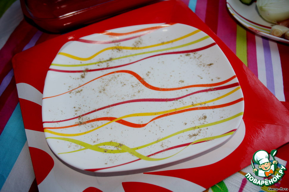 Перчим тарелку. Количество перца зависит от Вашего вкуса. -