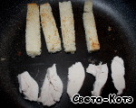 С белого хлеба срезаем корки и разрезаем их на брусочки (с одного кусочка хлеба у меня получилась 4 брусочка – как раз для одной порции).