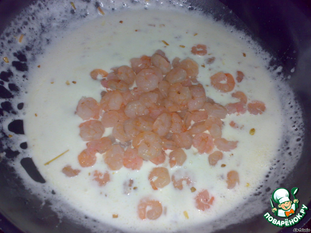 Продолжаю давать новую жизнь своим старым рецептам без фото. Очень нежное блюдо для любителей креветок.