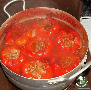 Вода при варке все равно проникнет в перцы, и начинка будет «плавать». Не пугайтесь, это входит в программу.