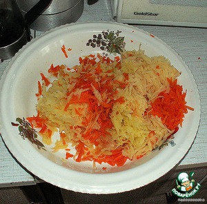 Трем на крупной терке картофель и морковку.