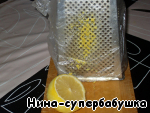 C лимона снять цедру. Очень удобно это делать, надев на терку полиэтиленовый пакет. Цедра с пакета легко снимается ножом, а терка остается чистой. Так же можно натирать и чеснок.