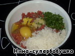 К фаршу добавить яйцо, измельченный чеснок, мелко нарезанную петрушку, крошки из вчерашнего белого хлеба и цедру.