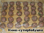 Фрикадельки (у меня получилось ровно 30 штук) затянуть пищевой пленкой и вынести на холод на полчаса.