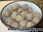 Фарш хорошо вымесить и слепить фрикадельки величиной с перепелиное яйцо или чуть больше.
