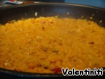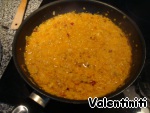 Специи добавляем в сковородку и ещё немного прожариваем. Потом засыпаем порошок карри. Ещё немножко жарим.
