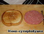 Ломтики хлеба (по числу корзинок) обжарить на растительном масле с двух сторон. Отрезать столько же ломтиков сервелата.