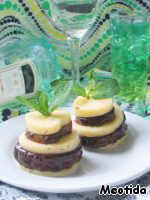 Из сыра и фруктов в шоколаде формируем канапешки, украшаем веточкой мяты.