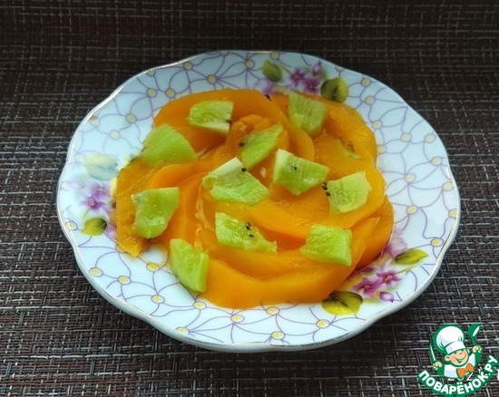 Выложили на тарелочку. Добавили киви. Полили лимонно-медовой заливкой. Получилось легкое, полезное, вкусное блюдо без каких бы то лишних усилий.