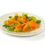 Натёрли тыкву тонкими длинными ломтиками. Отварили на пару 3-4 минуты.