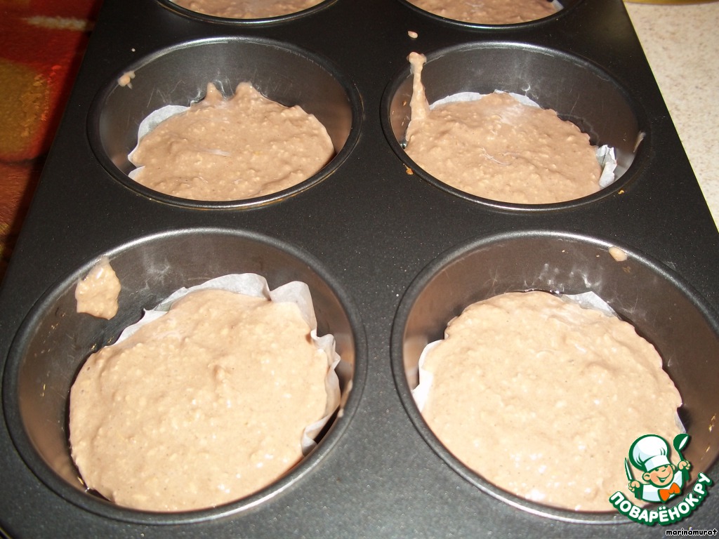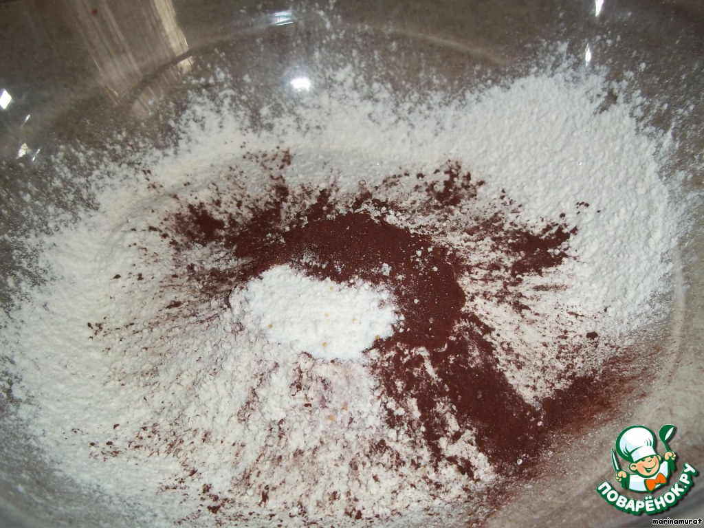 Какао, отруби и разрыхлитель (я забыла про отруби, но добавила их уже в самом конце).