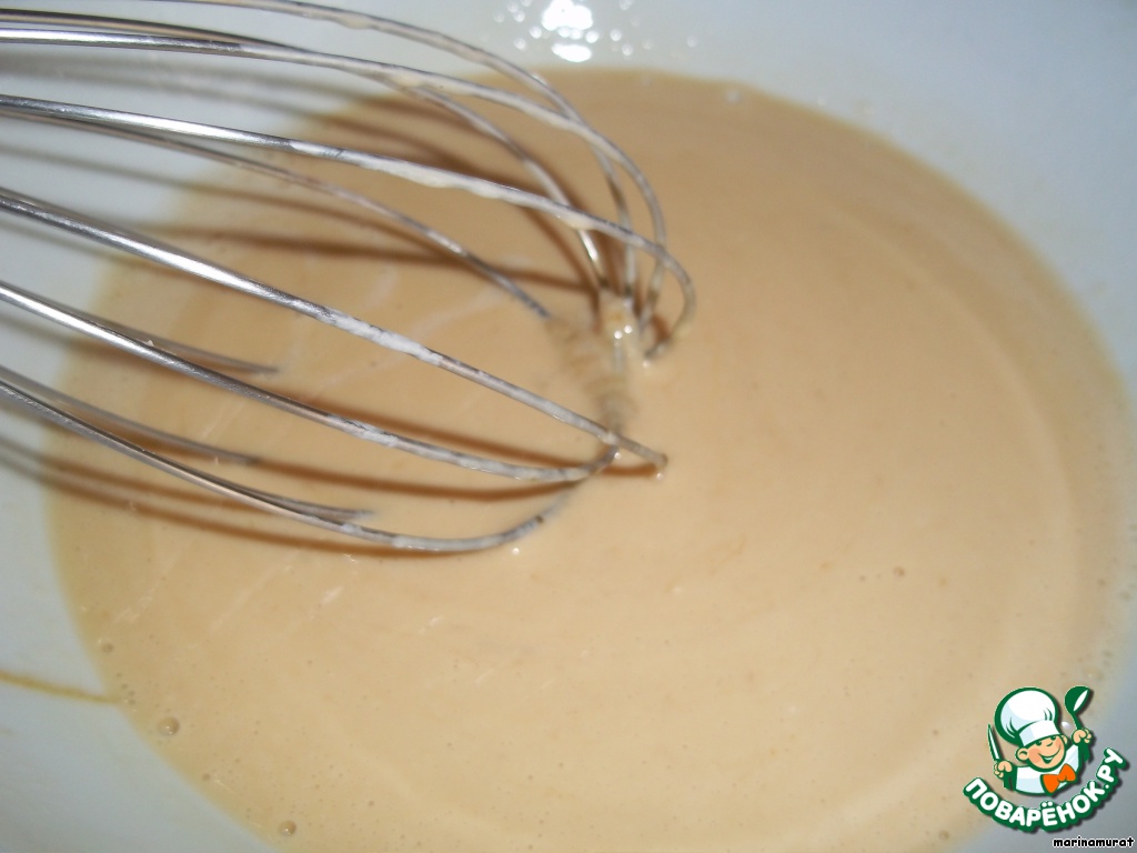 В отдельной посуде смешиваем кефир и яйцо, добавляем подсластитель (у меня виноградный сироп).