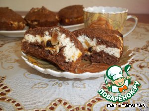 Сверху укладываем творожную начинку и закрываем оставшимся тестом, можно украсить сверху грецким орехом по желанию.
