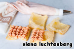 Готовые кусочки выпечки аккуратно разделить пополам вдоль и высадить кремом розочки на нижнюю часть. Слой крема должен быть довольно толстым.