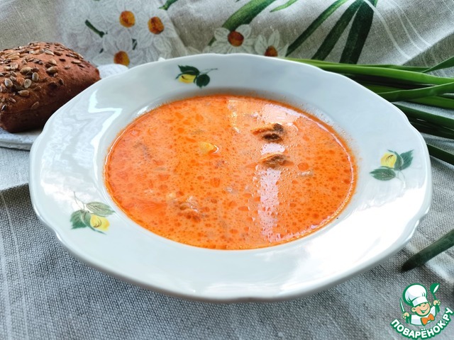 Этот суп первый раз я попробовала в студенческие времена, когда жила в общежитии, тогда мы его варили из самых дешевых консервов ("Килька в томатном соусе", которая тогда стоила примерно 5 руб. за банку), плавленного сырка "Дружба" за 2 руб. и картошки которую привозили из дома, затрат всего на семь рублей, а сколько удовольствия. Суп получается очень нежный, легкий и вкусный.