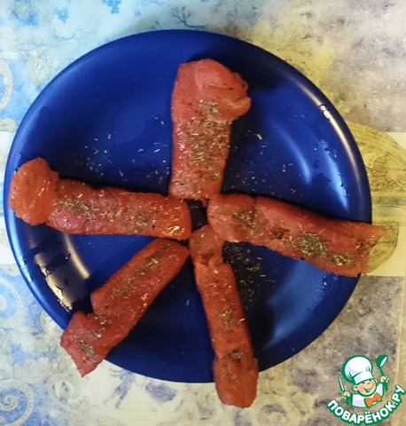 Итак. В этот раз взяла филе рыбки. Обычно беру целую тушку и не разбирая на филе нарезаю кусочками примерно 2,5 см толщиной. Ну, и тоже самое я сделала с филе. -
