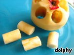 Яблоки порежьте кубиками, шариками или, как у меня, цилиндриками. Я сделала их при помощи приспособления для удаления сердцевины.