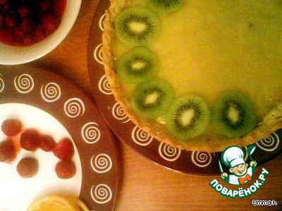 Подготовить фрукты и ягоды для этого их надо разрезать и выложить на салфетку, чтобы они обсохли и не были мокрыими, выложить фрукты или ягоды на остывший торт.
