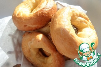 Подошедшее тесто обмять, разделить на равные кусочки (8-10 шт.). Сформировать бублики, как следует, соединяя концы.