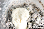 В творог добавить мак, перемешать.