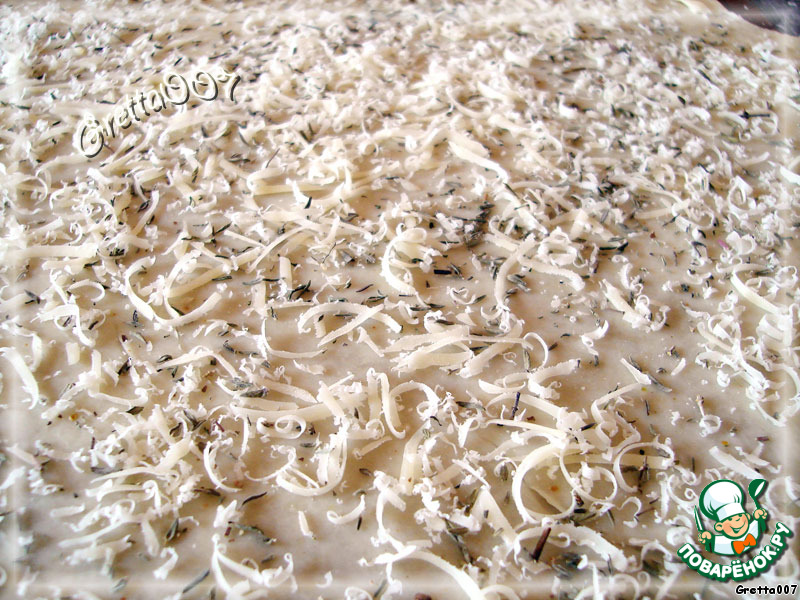 Один лист посыплем сухим тимьяном и измельченным на мелкой терке сыром. -