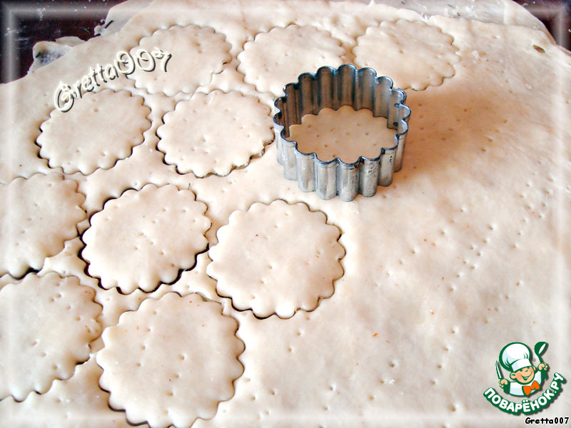 Кстати, чтобы не было "отходов", можно нарезать крекеры квадратиками. Но мне кружочки/цветочки показались симпатичнее.