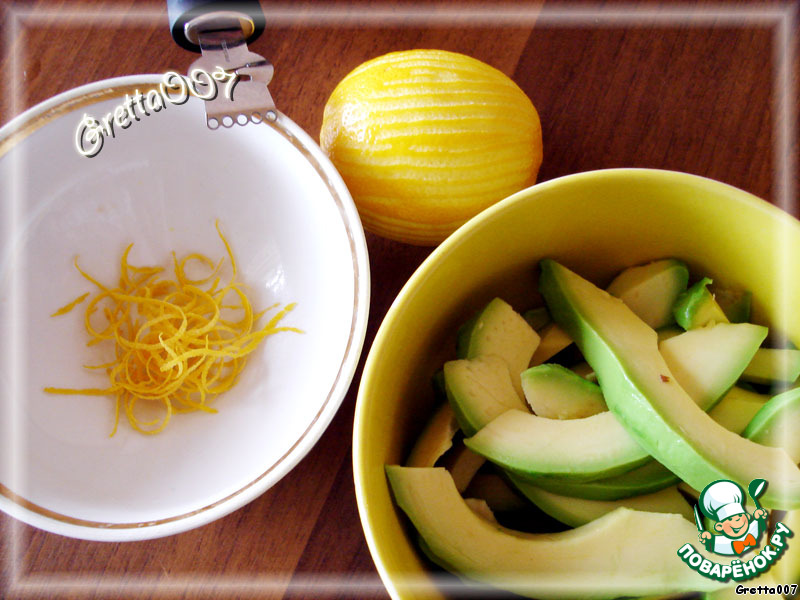 Авокадо разрежем пополам, удалим косточку, очистим и нарежем ломтиками. Добавим к авокадо сок половинки лимона, соль, немного черного перца и сделаем пюре. Лучше воспользоваться блендером. -
