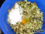 Посолить, поперчить, добавить яйцо и около 0,5 стакана муки.