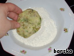 Сформировать из фарша круглые котлеты и обвалять их в муке.