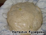 Жидкую смесь добавить в мучную. Хорошо все перемешать руками. Получится липкая масса. Накрыть миску с тестом полотенцем и оставить отдыхать на 10 минут. Смазать рабочую поверхность небольшим количеством растительного масла и вымешивать на ней тесто где-то 10 секунд. Сформировать из теста шар. Шар формируется таким образом: слегка расплющить тесто и придерживая его левой рукой (если вы правша), загибать края теста внутрь правой рукой; крутить тесто по кругу пока все края не будут завернуты к центру; затем перевернуть тесто гладкой стороной на верх. покрутить немного тесто в руках, придавая ему форму шара. Помыть миску, смазать ее растительным маслом и положить тесто внутрь. Накрыть полотенцем и оставить отдыхать на 10 минут. Опять вымешивать тесто в течение 10 секунд, сформировать шар и оставить отдыхать в миске, накрытым полотенцем, уже на 1 час.