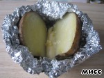 Достаём картофель из духовки, даём ему остыть, иначе наша начинка "растает" и "поплывёт". Разворачиваем аккуратно.