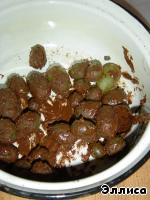 Посыпьте виноград в шоколаде 1 ст.л. какао (предварительно просеянного через сито) и аккуратно перемешайте.