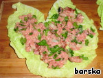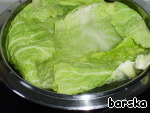 4 крупных листа савойской капусты бланшировать 5-6 минут в кипящей воде. Откинуть на сито и обдать холодной водой (для сохранения цвета). Пусть вода стекает...