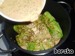 Влить соус в голубцы и тушить всё вместе на медленном огне 30 минут.