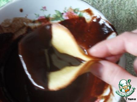 10 ст. л. воды, 2 ст. л. сахара, 5 ч. л. какао и 1 ст. л. сливочного масла тщательно перемешать и варить до загустения. Теперь обмакнуть каллы в глазурь.