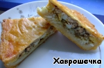 Вообще-то, пирог этот родился от отчаяния. Задумала я сварить чаудер, купила 4 баночки консервированного лосося, принесла домой, открыла одну и ахнула, открыла вторую и пригорюнилась, а когда открыла третью - просто взвыла ( ( ( Во всех банках было месиво из обрезков плавников, щековин, брюшек, костей и хрящей... В суп, тем более в чаудер, такое не положишь. Целый час сидела и перебирала содержимое банок. Выбрала все съедобные кусочки, на баночку набралось (это с четырех-то!!!). Вот и решила я испечь пирог. Судите сами что получилось. Только пекла я его вчера, а сегодня уже и следа нет...