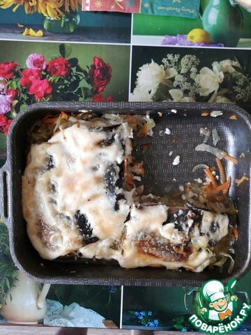 Из отступлений по рецепту: добавила в капусту грибы лесные белые и подосиновики.
