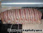 Полученный рулет плотно и очень тщательно завернуть в пленку
