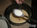 Размешивая, добавляем к ним малыми порциями горячие сливки.