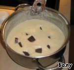 К полученной массе добавляем шоколад, оставим крем на 3-4 минутки, чтобы шоколад растопился и размешиваем до однородного крема. Даем крему остыть.