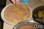 В основании положим целый блинчик, смазываем кремом и накрываем еще одним блинчиком.