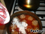 Берем пасту, разводим где-то стаканом воды, хотя сейчас это не так важно... Я добавляла туда аджику еще..., Вы - свою приправу.