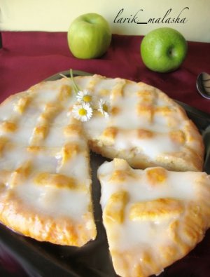 Как говорится, много яблочных пирогов не бывает! Предлагаю в Вашу копилку еще один рецепт вкусного яблочного пирога. Сладкое тесто, кисловатые яблочки, нежнейшая заливка... Отличное сочетание для воскресного чаепития. Рецепт этого блюда был размещeн на сайте в 2008 году пользователем juli под названием "Яблочный пирог" и иллюстрирован мной в рамках акции «Раскраски».