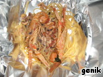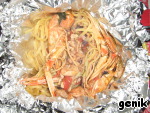 Фольгу герметично закручиваем, шов должен оказаться сверху. Помещаем в духовку, разогретую до 200град., на 20 мин.