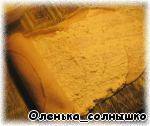 Из указанного количества ингредиентов испечь тонкие блинчики, у меня получилось шесть с половиной штук (половину я съела просто так), каждый блин, с одной стороны, смазывать после выпекания сливочным маслом